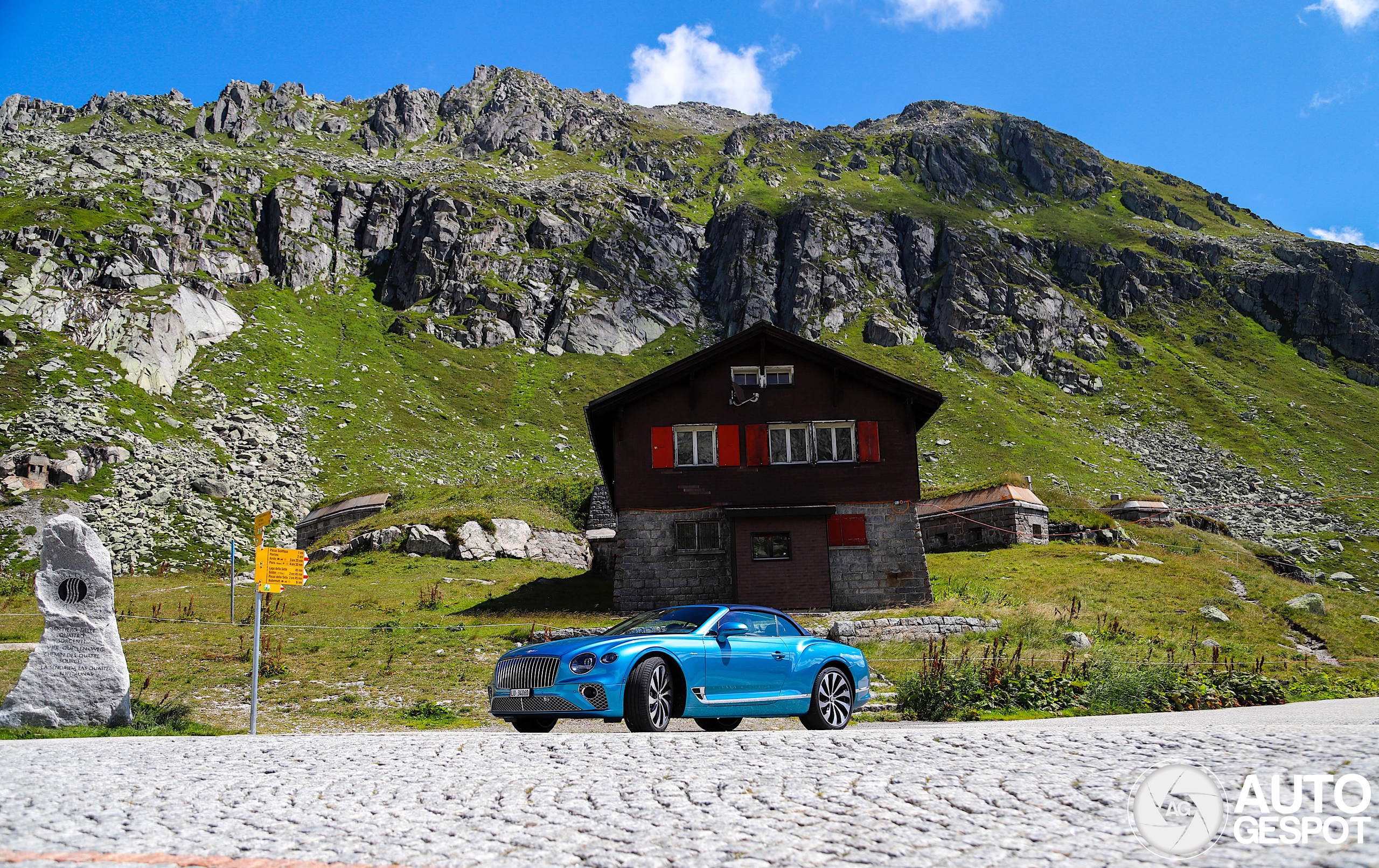 Super fraaie Bentley bovenop de Gotthard :)
