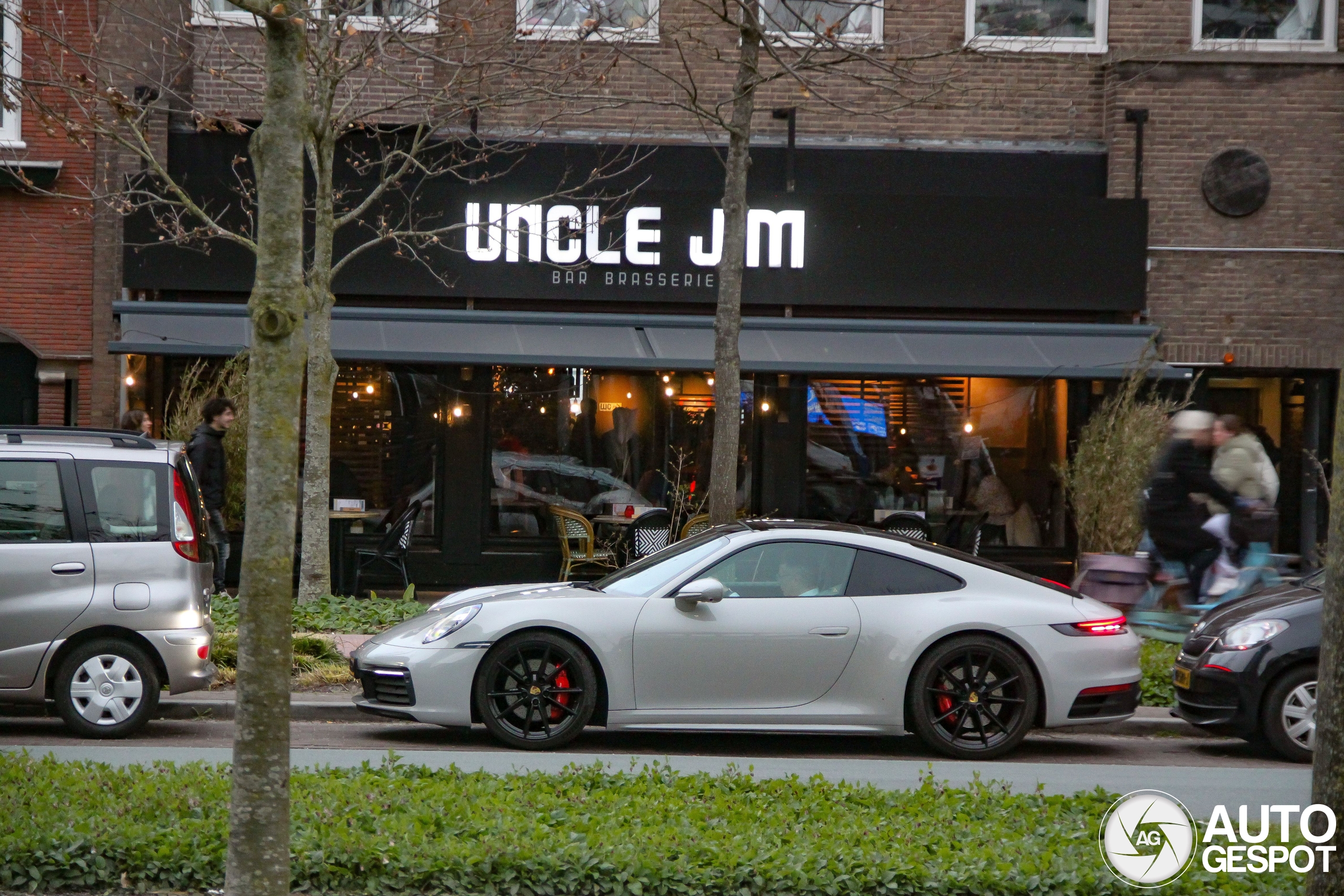 Leuke onverwachtse Porsche op de bekende Croeselaan voor de deur bij Brasserie Uncle Jim, zelf ook al aantal keer met mensen gegeten. Nog hem nog net op afstand meepakken half in de schemering helaas. Dichterswijk, Utrecht.
