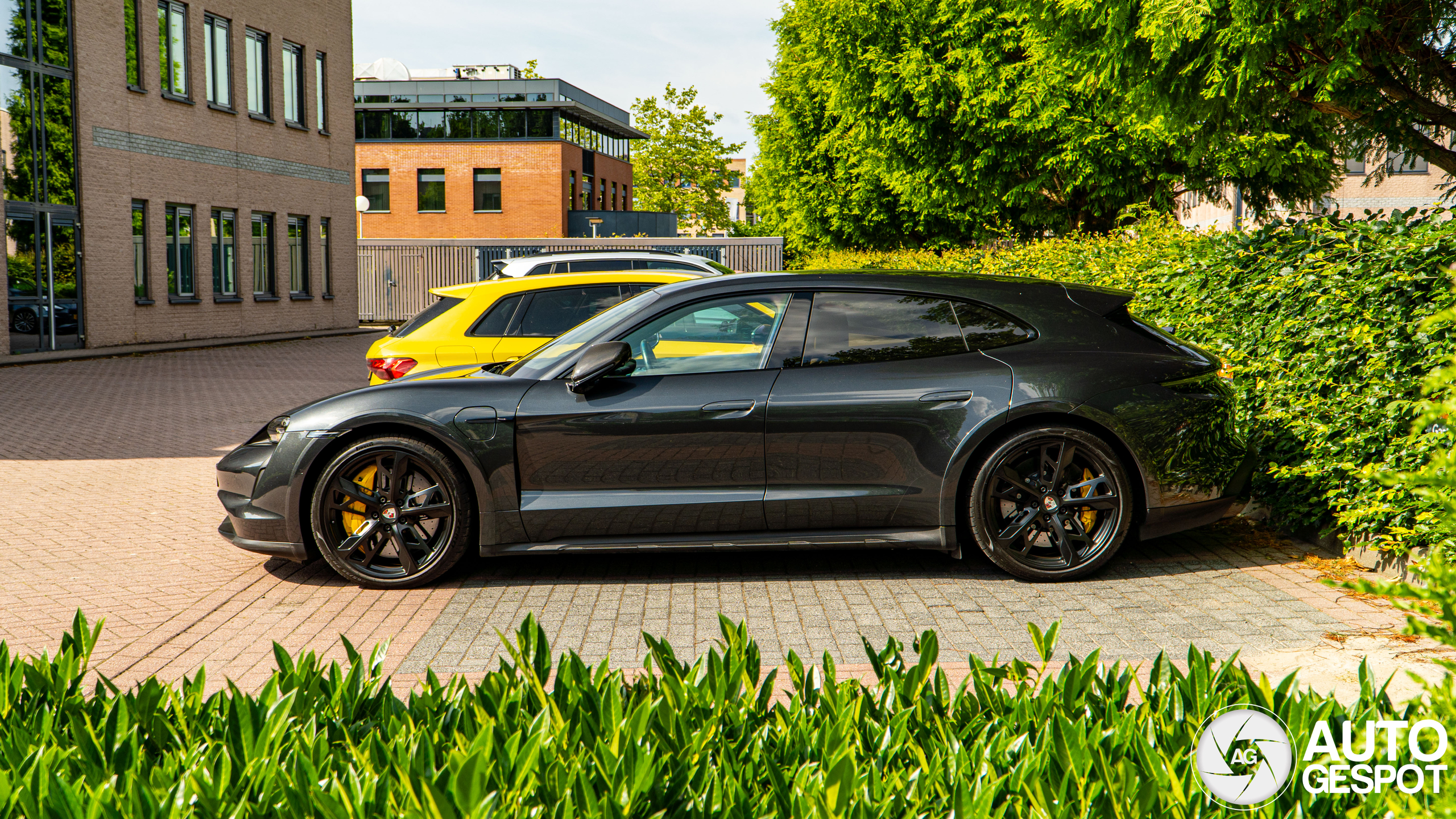 Vet model van Porsche, deze Taycan Cross Turismo. Deze Turbo S is hiervoor alleen in Anholt gespot. Sindsdien is 'ie naar een nieuwe eigenaar gegaan en nu liggen er donkergrijze velgen en gele remklauwen onder, een hele verbetering!